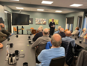 I kvekdens møte hadde vi besøk av prosjektleder Morten Klokkersveen fra Nye Veier, et statlig selskap som skal sikre effektiv gjennomføring av store veiprosjekter. Han fortalte om prosjektet E18 Rugtvedt - Langangen. Vi fikk høre om et krevende prosjekt, krevende ingenlør og entrenøroppgaver og en flott veiløsning.