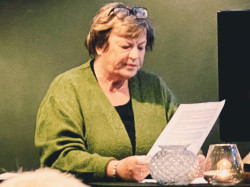 Karin leste en julefortelling fra Larvika. Fortellingens hovedpersoner hadde samme navn som flere av styrets medlemmer. De gjorde en fantastisk innsats og fikk julestjerna på plass. Forfatteren, vår egen Carmen, kunne avsløre at kunstig intelligens (Chat GPT) var benyttet til å skrive fortellingen. Fantastisk!