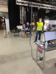 llARVIK ØST ROTARYKLUBB bisto Larvik kommune ved gjennomføring av koronavaksineringen. Vår rolle var å påta oss rollen som Som vertskap som skulle ta imot innbyggerne i Larvik på en trygg og varm måte. Arbeidet besto i å vise personer til tildelt plass. og påse at ingen, i etterkant av vaksinering, opplevde ubehag.